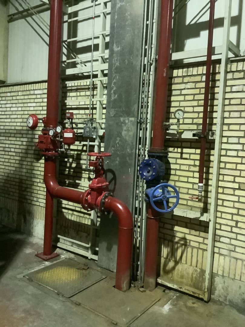 عملیات ساخت ، نصب و راه اندازی سیستم اعلان و اطفای حریق سالن رنگ ویژه و انبار تولیدی